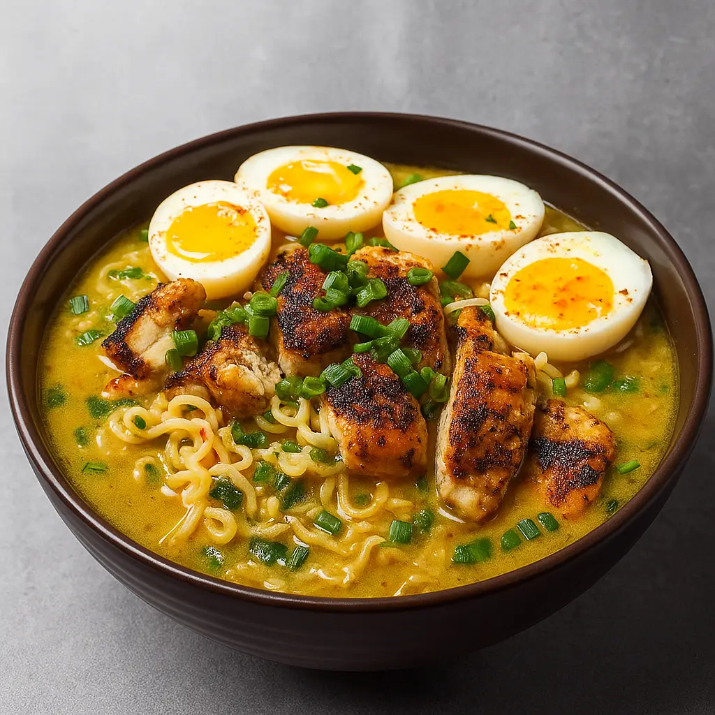 A delicious bowl of Creamy Garlic Chicken Ramen that combines rich flavors of garlic and chicken with comforting ramen noodles.