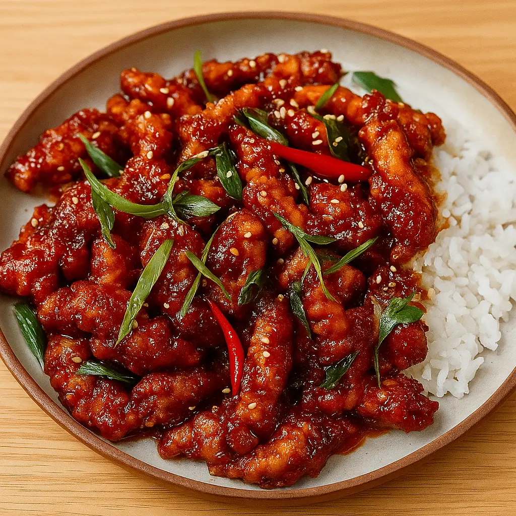 Thinly slicing your chicken helps it cook quickly and evenly. Don’t skip the cornstarch — it’s the secret to that signature crispy exterior. Use high heat when frying for the best texture. If you prefer extra spice, add more dried chilies or a dash of Sriracha. And most importantly, don’t let your sauce sit too long after adding the chicken — toss and serve right away so you keep that perfect balance of crunch and stickiness.
