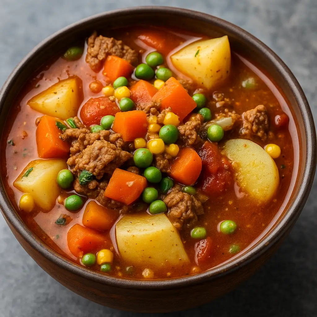 With ground beef, potatoes, tomatoes, and mixed vegetables simmering slowly in flavorful beef broth, it creates a balance of hearty textures and deep, savory flavors. The slow cooking process allows the ingredients to meld beautifully, producing a taste that’s comforting yet refreshingly homemade. Perfect for fall and winter nights or lazy weekends, it’s the kind of meal that reminds you that simple really can be spectacular.