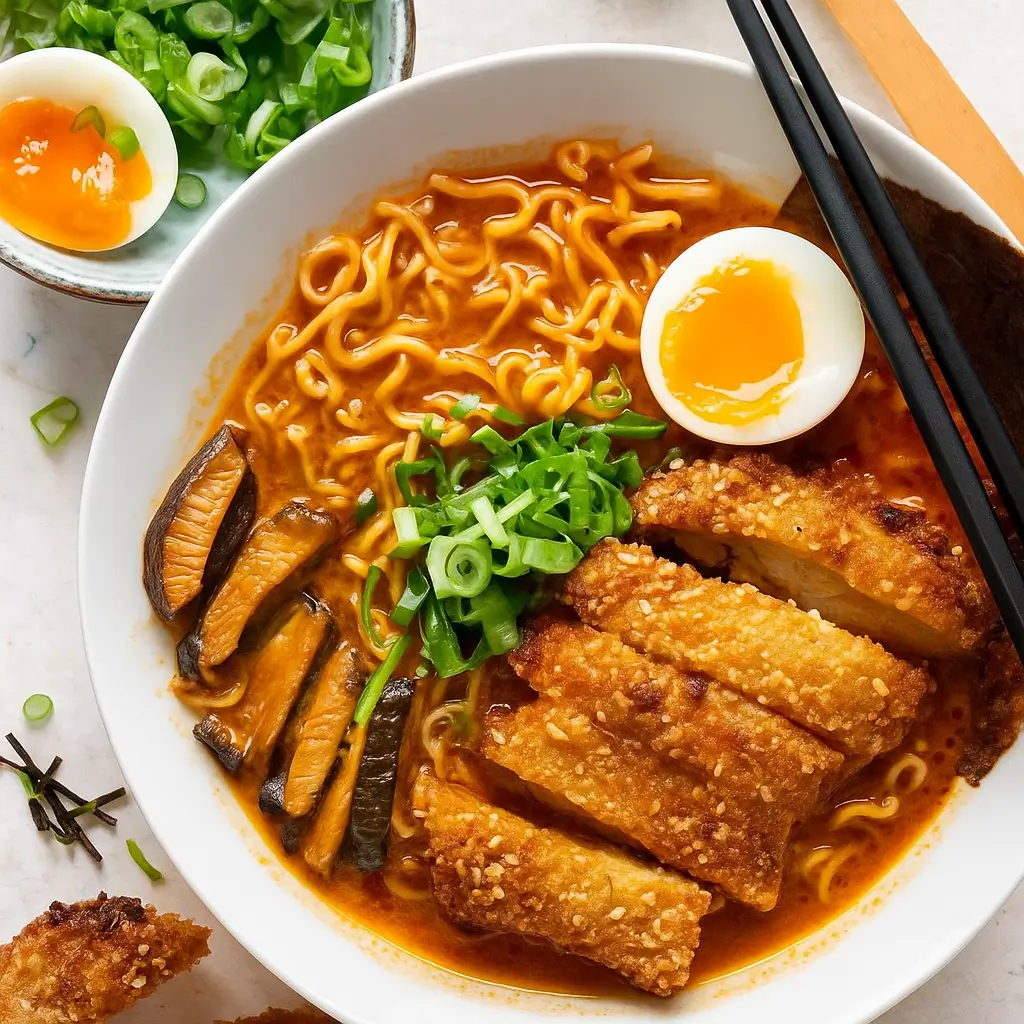 Spicy Ramen With Chicken Katsu is a hearty Japanese-inspired noodle soup that blends comforting ramen with the crispy goodness of chicken katsu. Think of it as a love story between two beloved dishes—ramen for the soul and katsu for the crunch.